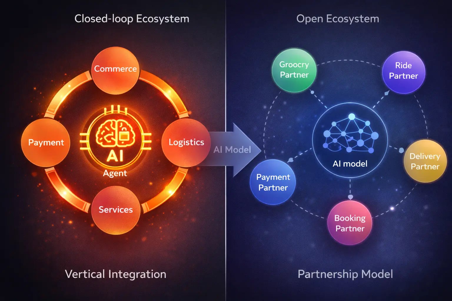 Alibaba’s closed-loop advantage has global implications. OpenAI needs partnerships to execute in the physical economy: Instacart for groceries, Uber for rides, Klarna for payments. Each handoff is a trust boundary and a revenue split. Alibaba owns the entire stack.