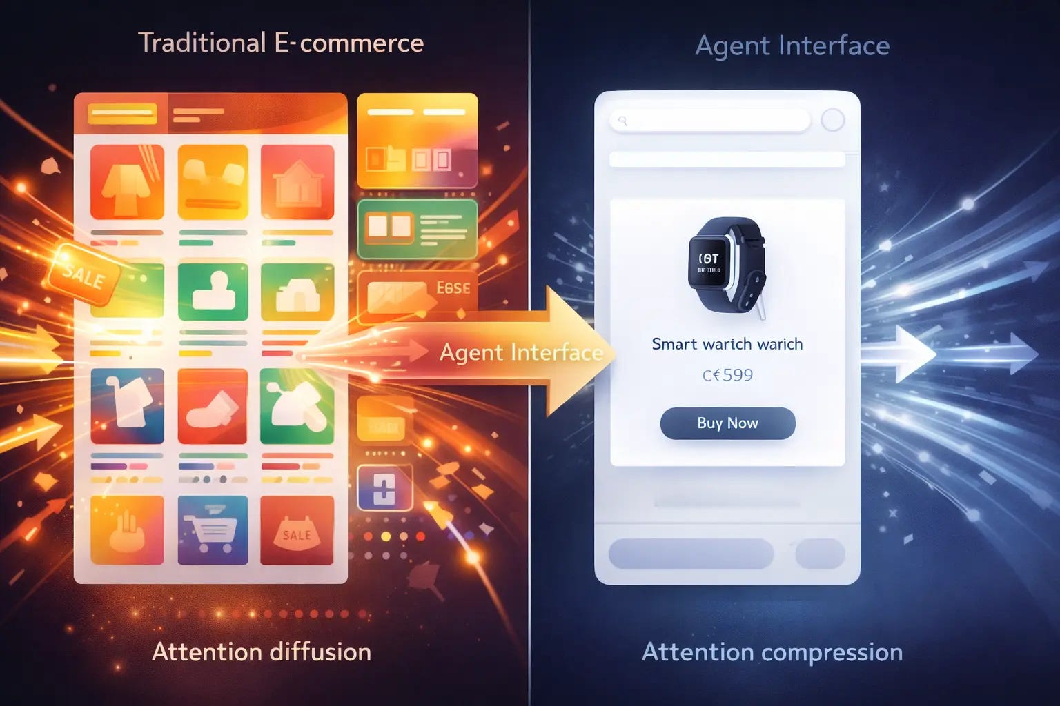 An agent interface does the opposite. It compresses attention. It tries to reduce steps, reduce scrolling, and reduce time spent. The “ideal” assistant does not want you to browse. It wants you to finish.
