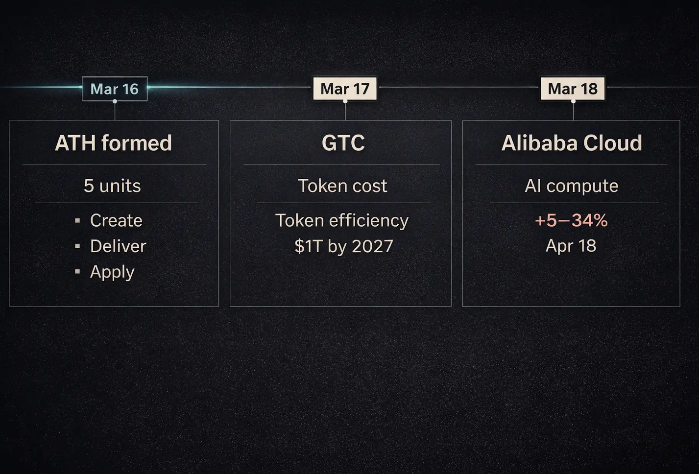 On March 18, Alibaba Cloud announced price increases on AI compute products effective April 18, with compute card pricing set to rise by 5 to 34 percent, citing surging demand and rising hardware costs.