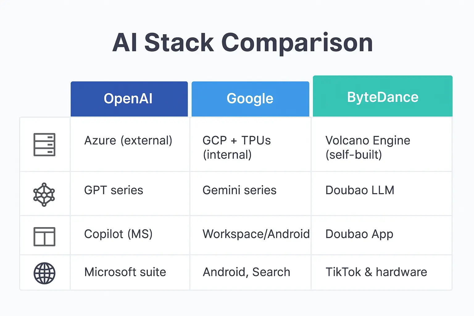 This approach mirrors Big Tech’s playbook, but with key distinctions. Unlike OpenAI, which relies on partners like Microsoft for both distribution and infrastructure, or Google, which leverages its cloud empire and in-house chips (TPUs), ByteDance is attempting full-stack control without historical advantages. This makes its play bolder, but fraught with operational risk.
