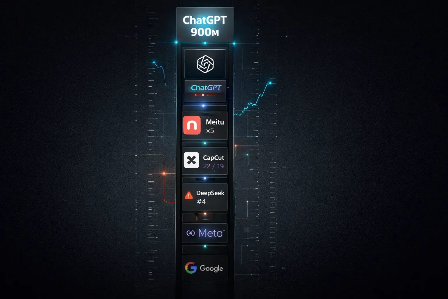 English-language commentary latched onto DeepSeek. The model-layer narrative proved irresistible. Yet the majority of Chinese entrants across both web and mobile were application-layer products: image editors, video generators, creative tools. Meitu, the Chinese photo and design software company, placed five separate apps in the global mobile Top 50. All five serve primarily overseas users.