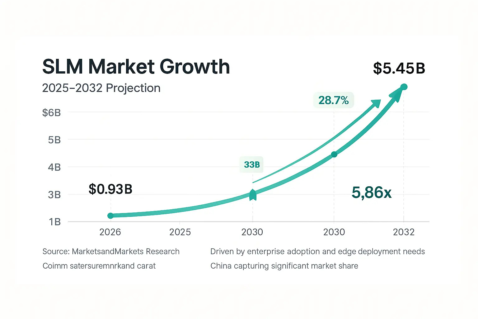 The small language model market, projected to grow from $0.93 billion in 2025 to $5.45 billion by 2032 (CAGR 28.7%), reflects demand for AI solutions that prioritize deployment efficiency over theoretical capabilities. Chinese companies are capturing disproportionate share through three factors: data sovereignty requirements favoring local deployment, cost sensitivity in manufacturing sectors, and infrastructure realities in smaller cities.
