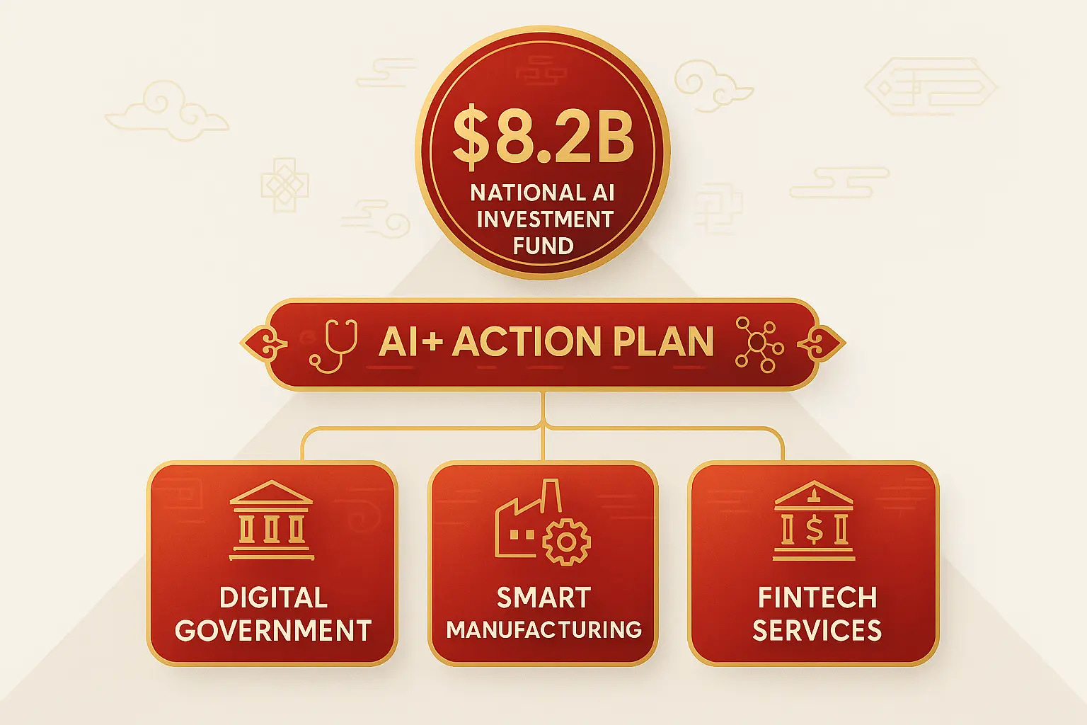 Xi Jinping’s emphasis on technology being “applications-oriented” has translated into concrete policy support. The central government launched an $8.2 billion national AI investment fund in January 2025, specifically targeting practical applications over basic research. In August 2025, Beijing followed up with an official “AI+ Action Plan”requiring local governments to produce measurable implementation schemes.