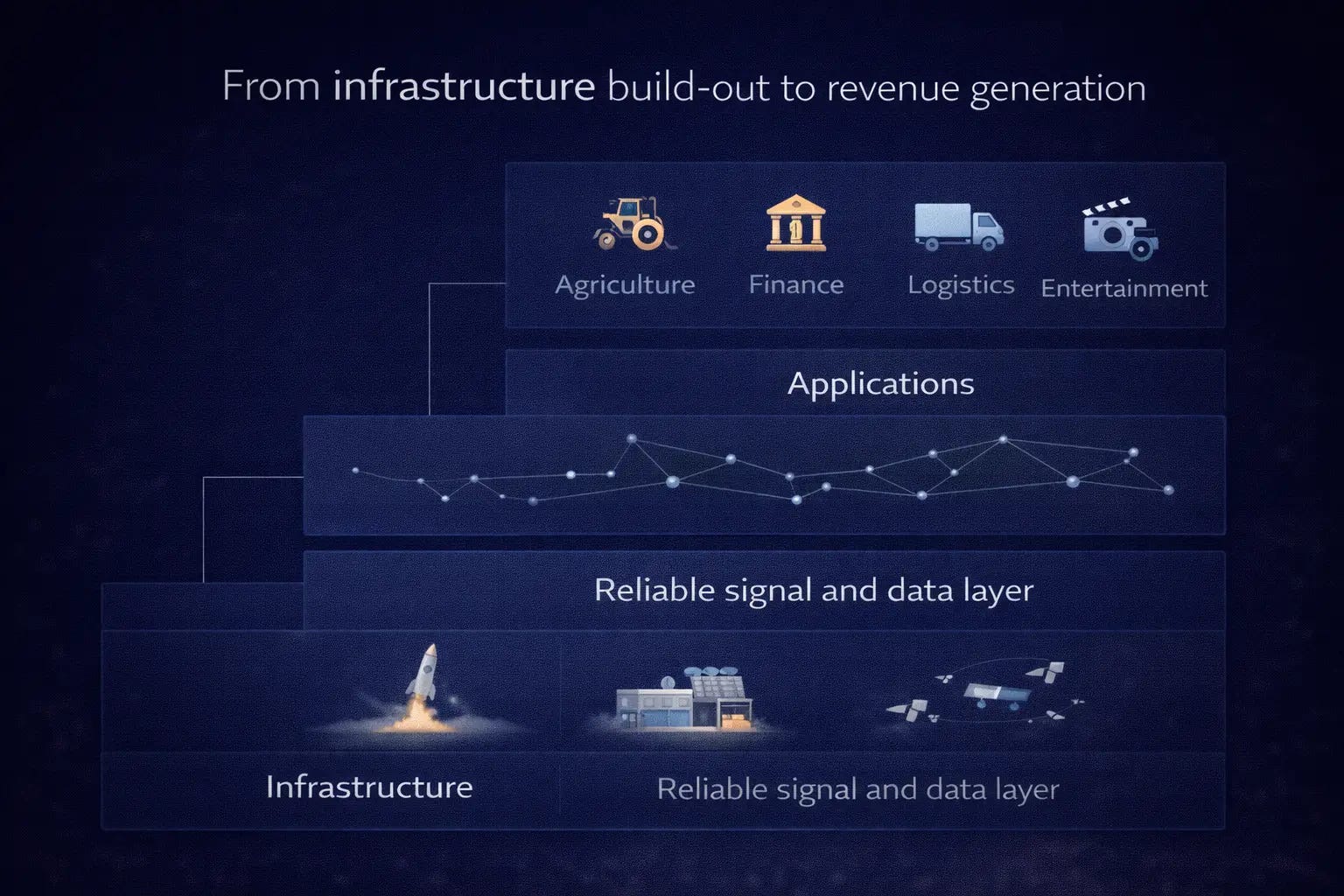 For this approach to succeed over the long term, the infrastructure must enable applications that generate sustainable revenue. The “space plus” phase must materialize. Think space-enabled precision agriculture, logistics tracking, financial data services, or other use cases that justify the massive capital expenditure.