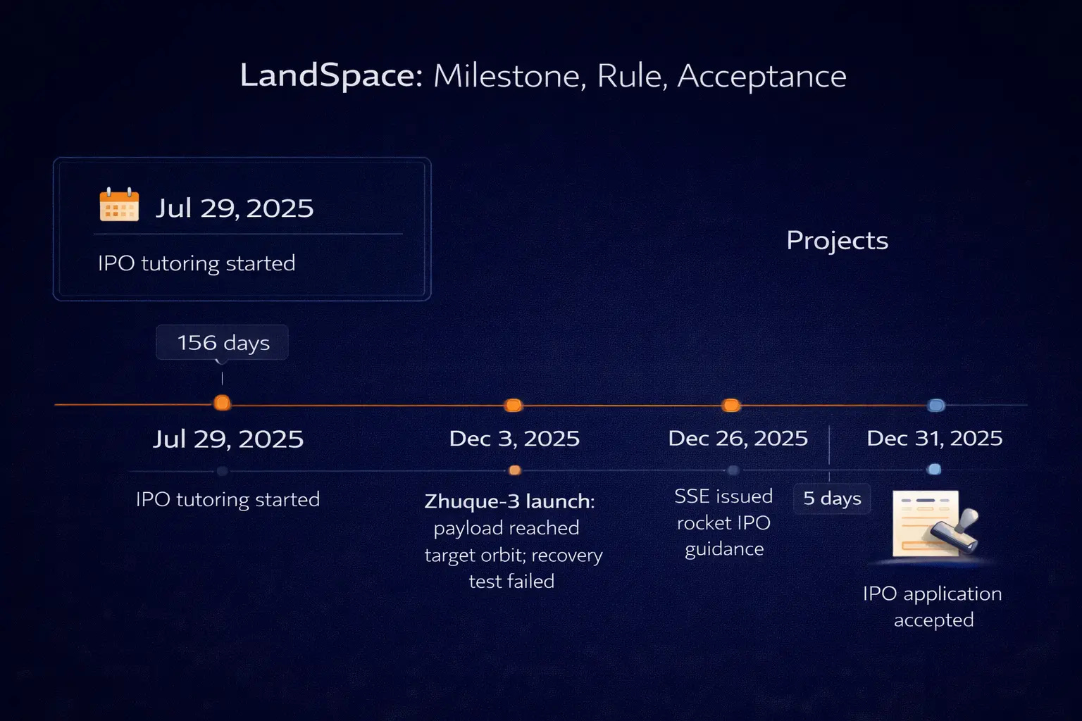 Consider the timeline and what counts as success. The Shanghai Stock Exchange published its rocket company guidelines on December 26. Just five days later, LandSpace’s IPO application was accepted. The company’s Zhuque-3 rocket had achieved China’s first successful orbital insertion using a reusable design on December 3, though the recovery test failed. The timing is hard to miss, and the technical bar was set at orbital insertion rather than full reusability.