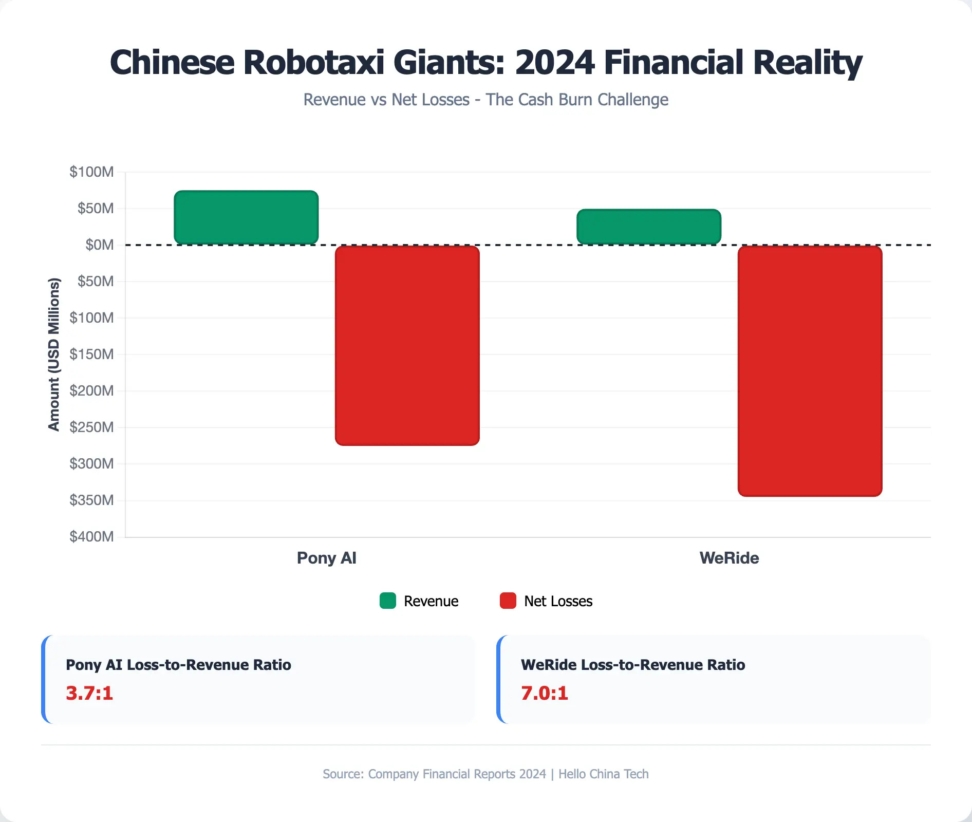 The numbers driving Chinese companies toward the Middle East are stark. Pony AI’s 2024 net losses dwarfed its revenue by nearly four to one, while WeRide saw adjusted net losses balloon even as revenue fell. Both companies are burning through cash at rates that make profitability a distant prospect without dramatic revenue growth.