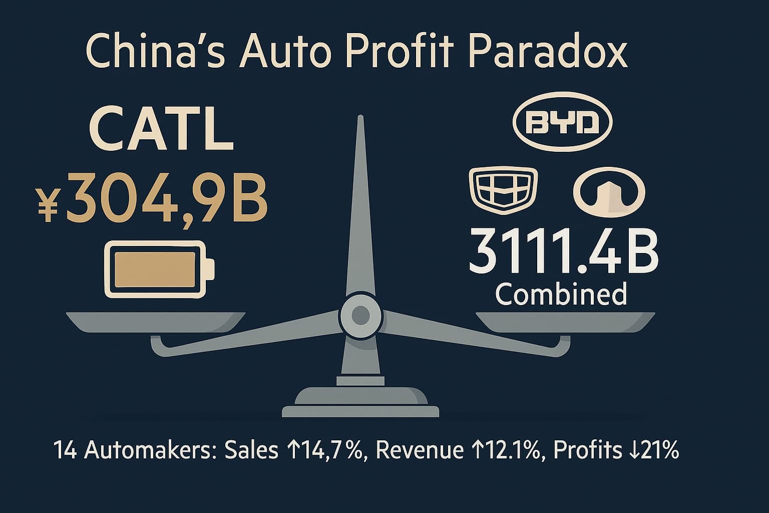 Editor’s note: This edition of Flashpoint dissects the sharpest fault line in China’s EV boom: automakers chase volume, while CATL captures the profits. In under 700 words, we cut through the numbers to show why the battery maker looks more like Intel in the PC era than any car brand today. Flashpoint is Hello China Tech’s premium quick-strike column — concise, selective, and built to explain market-moving events before the noise takes over.
