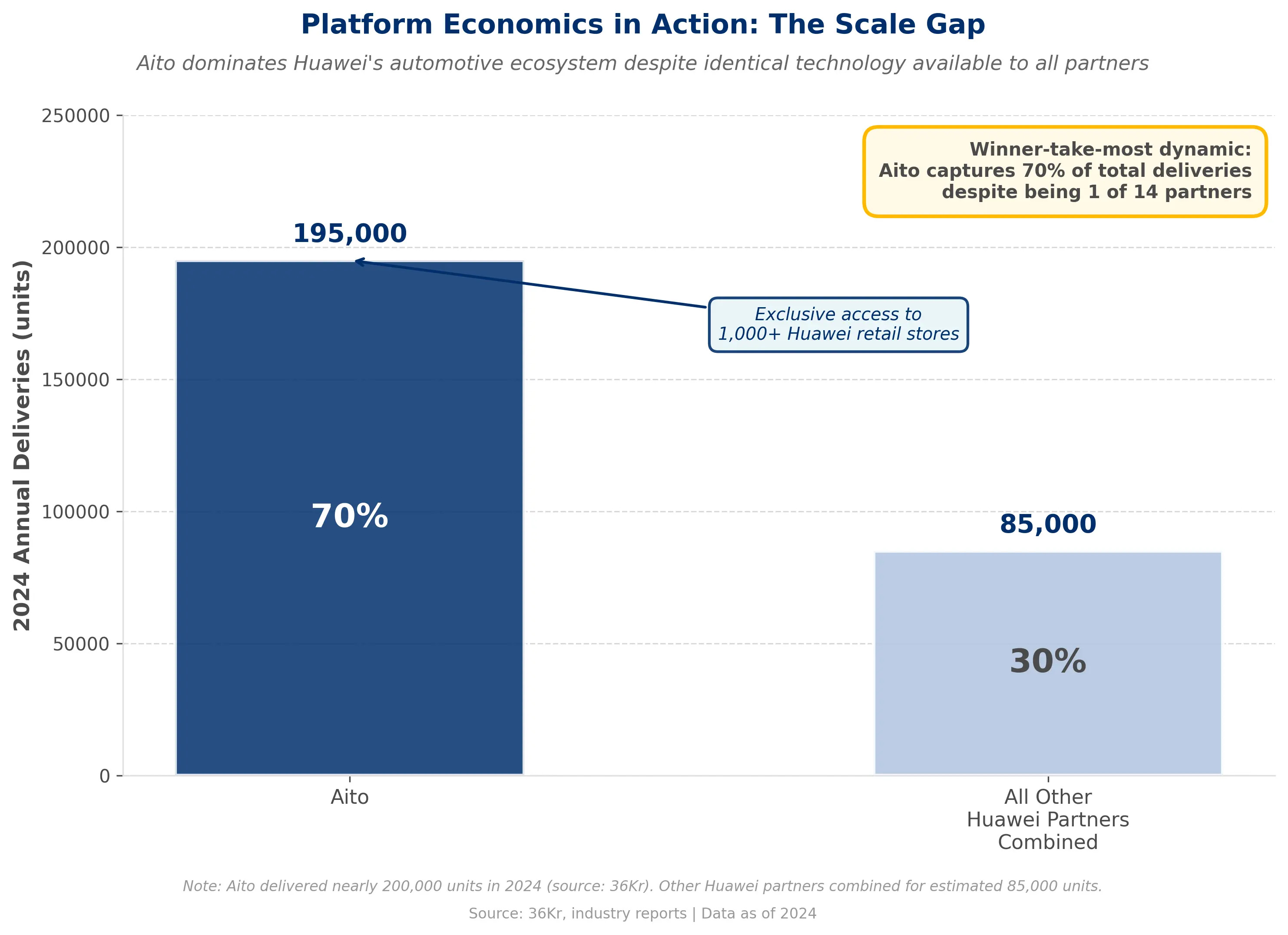 The puzzle is this: 14 automakers compete with the same core product. Only one is winning. The business model appears unstable. Yet money keeps flowing into these partnerships. Executives keep visiting Huawei headquarters. More brands keep launching. Understanding why requires looking past the technology to the underlying economics.