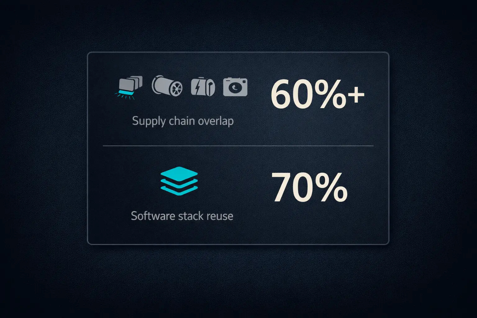 Chinese carmakers cite a 60% supply-chain overlap and 70% software reuse. Early evidence suggests the hard 30% decides the outcome.