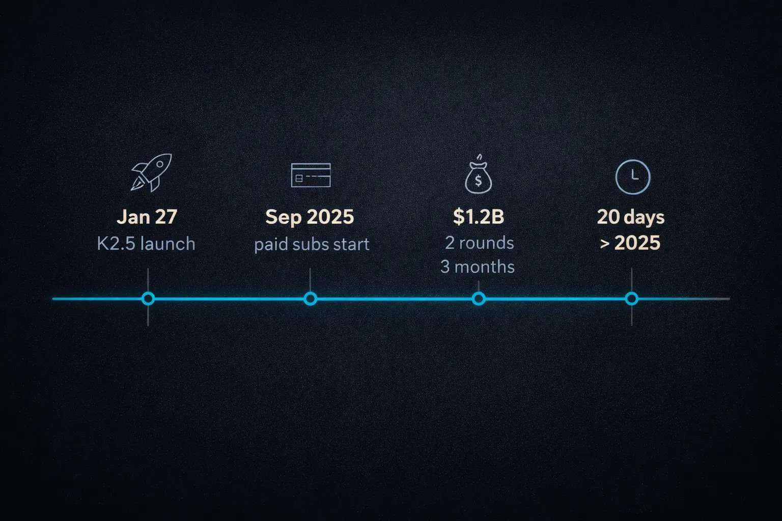 That claim is factually correct and carefully constructed. Moonshot launched paid subscriptions in September 2025. The denominator in “twenty days versus a full year” covers roughly four months of nascent monetization from a company that spent most of 2025 dismantling its previous growth model. As I analyzed in January, Moonshot killed its marketing budget, shut down consumer products like Ohai and Noisee, and pivoted entirely to open-source developer tools. Revenue fell before it could rise. Beating that baseline is a legitimate achievement. Treating it as a commercial breakout requires a closer look at what actually produced the money.