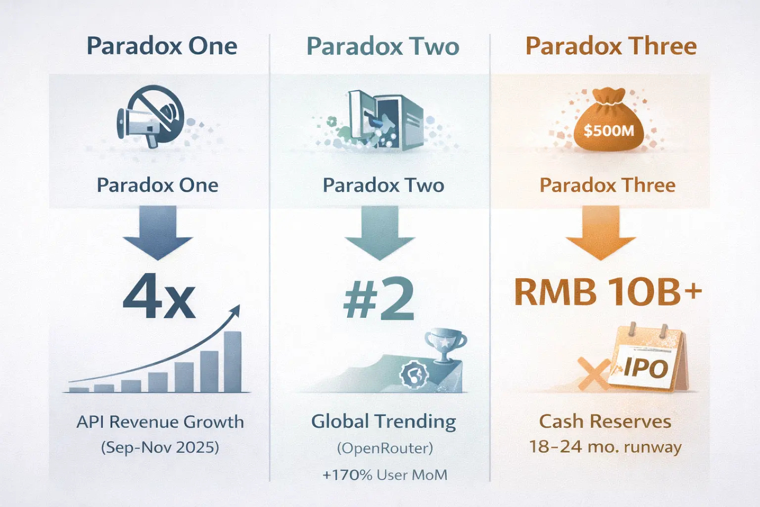 Yang’s internal memo flipped this logic. The RMB 10 billion+ cash position meant the company could handle 18–24 months of compute inflation without worrying about quarterly earnings or public market pressures. The money wasn’t fuel for aggressive expansion. It was insurance against being forced into the wrong strategic choices.