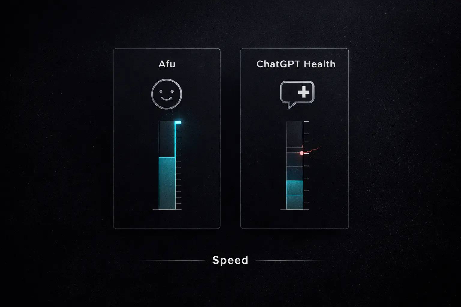 Afu hit 30M MAU as ChatGPT Health launched. Same tech, two systems: speed versus trust.
